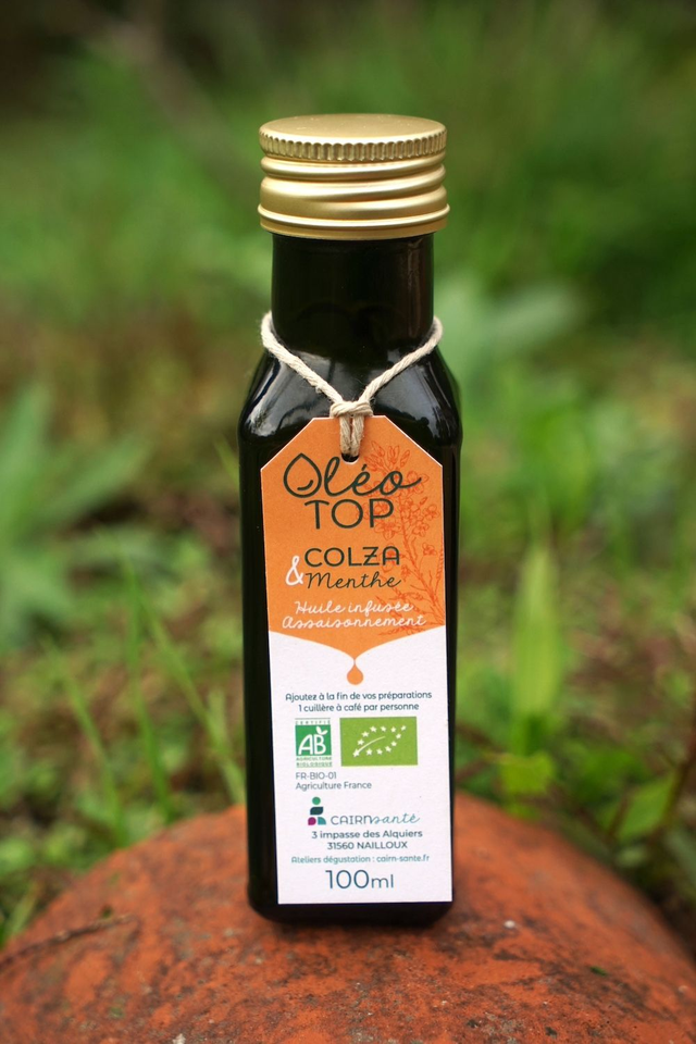 On ne présente plus la menthe verte qui dégage un parfum puissant, celle des restaurateurs et des glaciers. Mais infusée dans l'huile de colza, c'est un véritable bonheur aromatique, comme si vous croquiez une feuille de menthe fraîche.